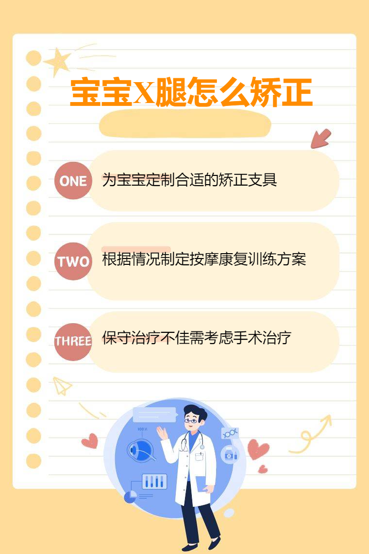 宝宝X腿的矫正方法有佩戴矫正支具、按摩康复训练、手术治疗等。