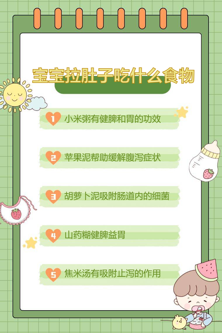 宝宝拉肚子可吃的食物有小米粥、苹果泥、胡萝卜泥、山药糊、焦米汤等。