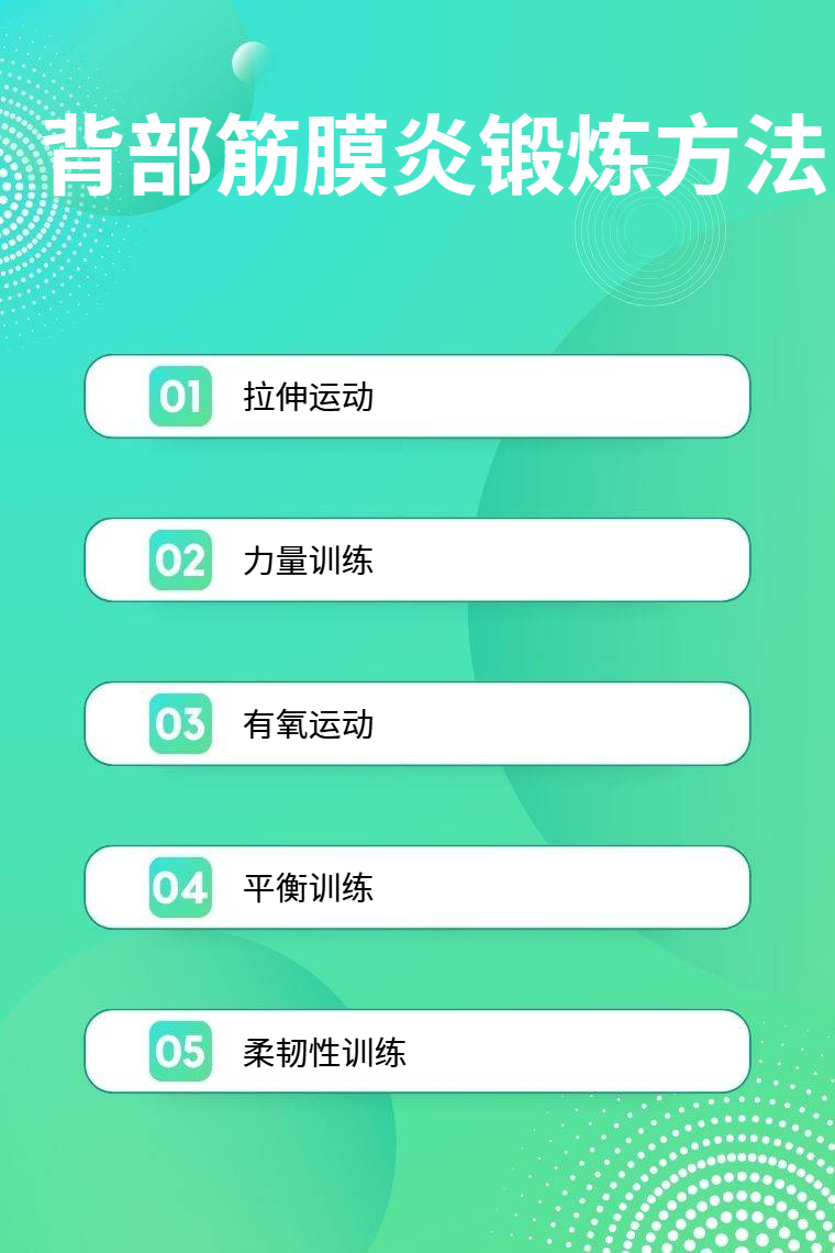 背部筋膜炎锻炼方法有拉伸运动、力量训练、有氧运动、平衡训练、柔韧性训练等。