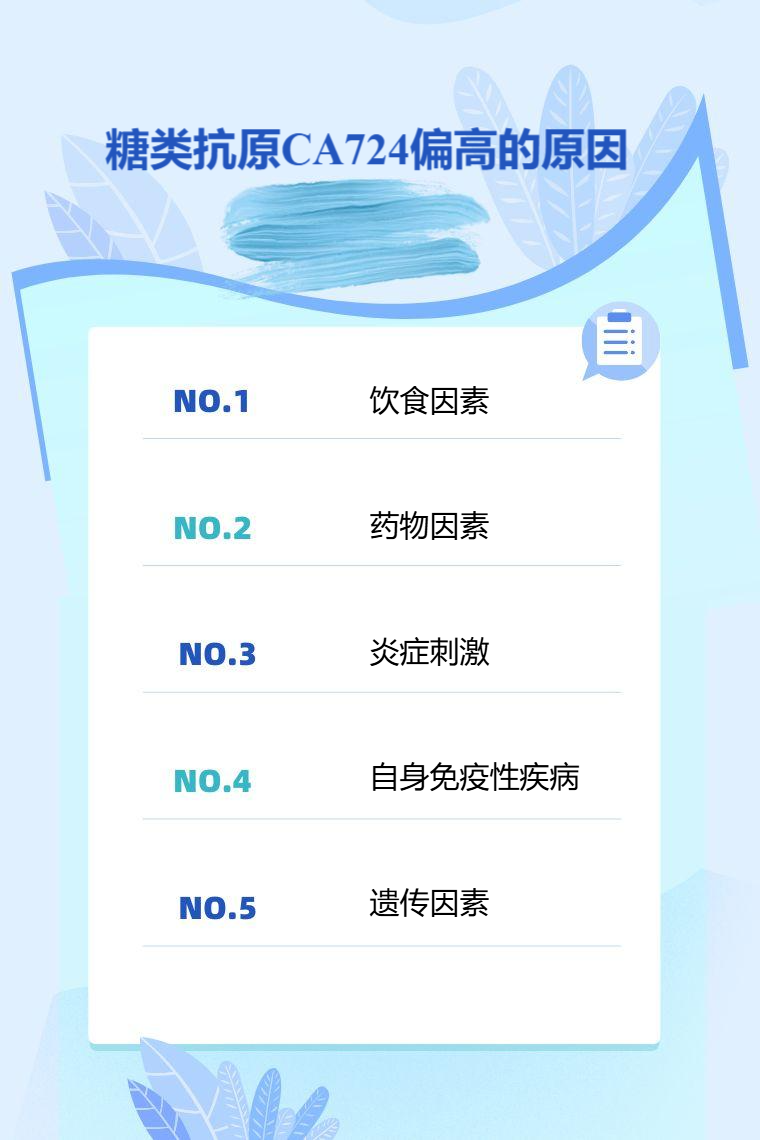 5. 遗传因素:部分人群因遗传基因问题,可能出现CA724先天性偏高。定期体检,密切关注指标变化,同时保持健康的生活方式。