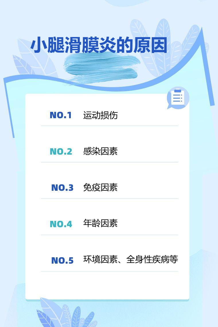 小腿滑膜炎的原因包括运动损伤、感染因素、免疫因素、年龄因素、其他因素等。