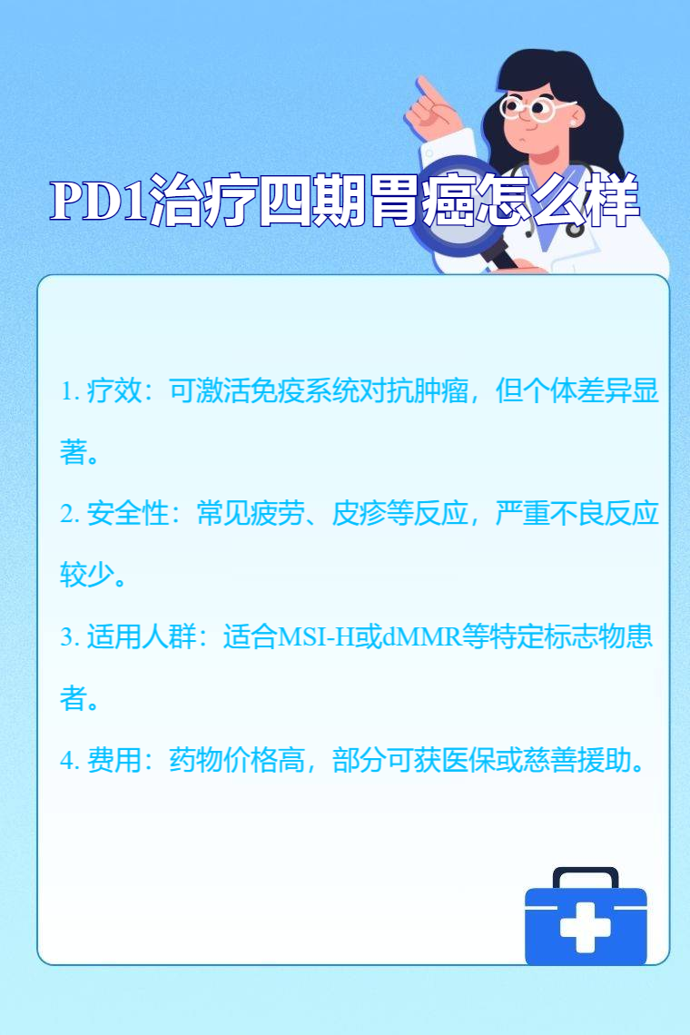 PD1治疗四期胃癌在疗效、安全性、适用人群、费用等方面各有情况。
