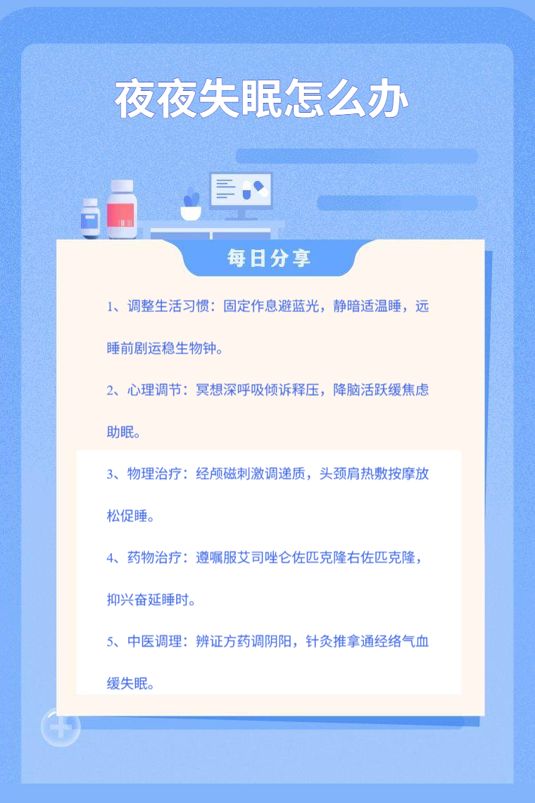 夜夜失眠可通过调整生活习惯、心理调节、物理治疗、药物治疗、中医调理等方法来改善等。