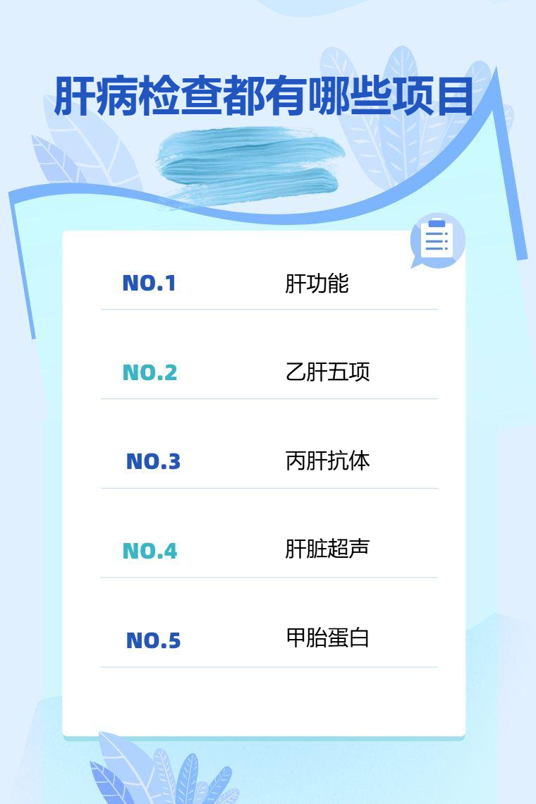 肝病检查项目有肝功能、乙肝五项、丙肝抗体、肝脏超声、甲胎蛋白等。