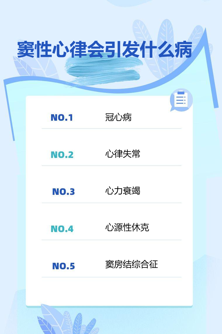 窦性心律可能引发冠心病、心律失常、心力衰竭、心源性休克、窦房结综合征等。