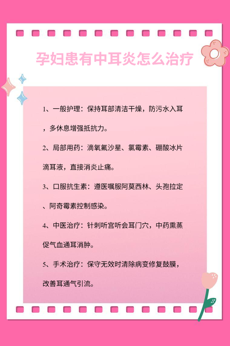 孕妇患有中耳炎可通过一般护理、局部用药、口服抗生素、中医治疗、手术治疗等方法来应对。