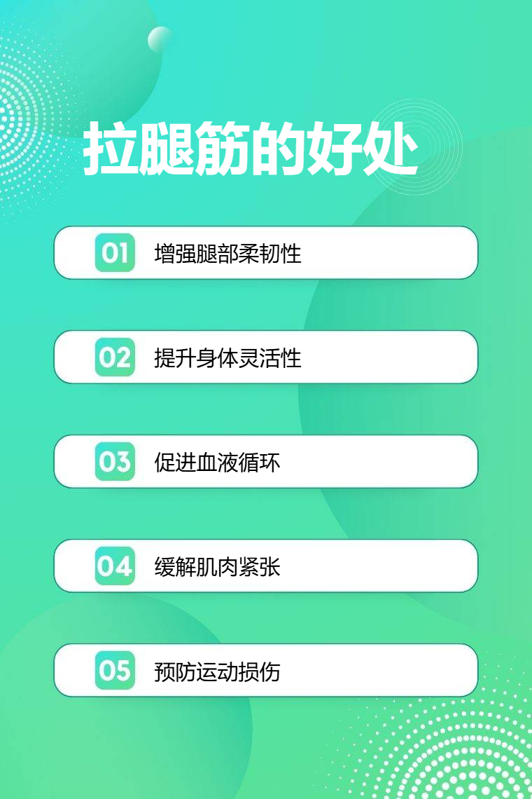 3. 促进血液循环:拉腿筋的过程中,腿部肌肉的收缩与舒张能够促进腿部血液循环,使血液更好地回流到心脏,为身体各组织器官提供充足的养分,维持身体正常运转。
