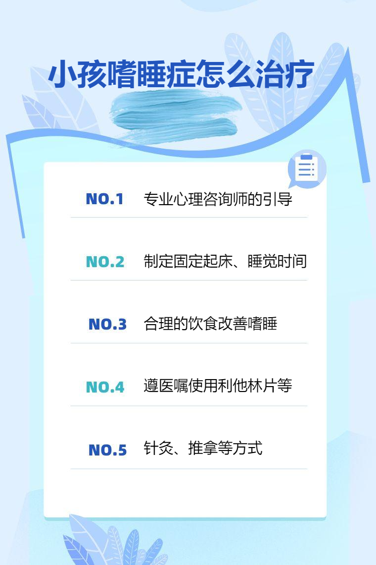 小孩嗜睡症的治疗方法包括心理治疗、生活作息调整、饮食调节、药物治疗、中医治疗等。