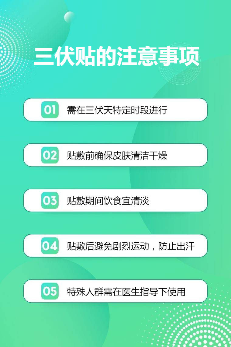 5. 特殊人群:孕妇、心脏病患者、糖尿病患者、体质虚弱者等特殊人群,需在医生指导下使用三伏贴,确保安全有效。