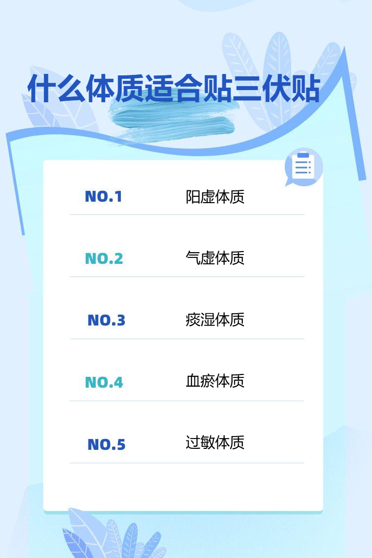 阳虚体质、气虚体质、痰湿体质、血瘀体质、过敏体质等适合贴三伏贴。