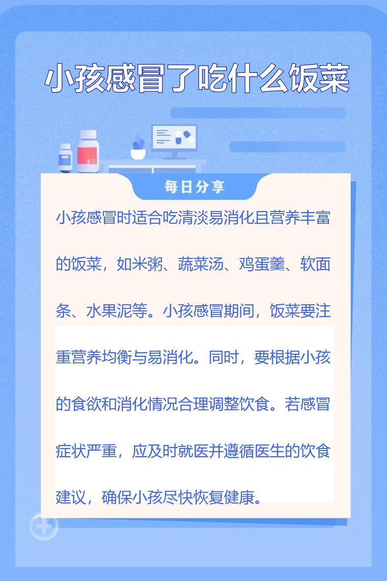 小孩感冒时适合吃清淡易消化且营养丰富的饭菜,如米粥、蔬菜汤、鸡蛋羹、软面条、水果泥等。
