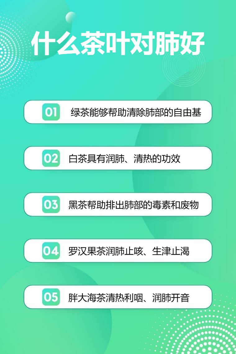 对肺好的茶叶有绿茶、白茶、黑茶、罗汉果茶、胖大海茶等。