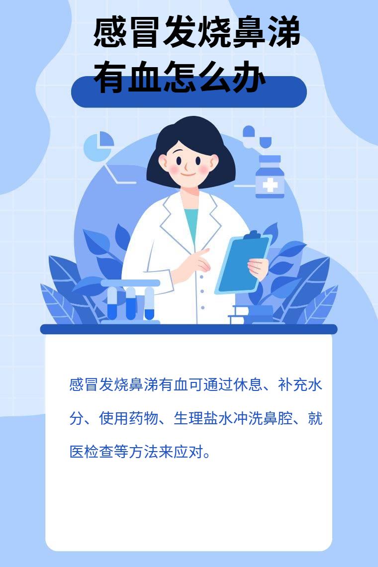 感冒发烧鼻涕有血可通过休息、补充水分、使用药物、生理盐水冲洗鼻腔、就医检查等方法来应对。