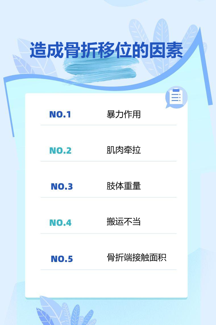 4. 搬运不当:在骨折发生后,如果搬运方法不正确,可加重骨折移位。如搬运脊柱骨折患者时,若未采取正确的脊柱固定和搬运方法,可导致骨折断端移位,损伤脊髓。