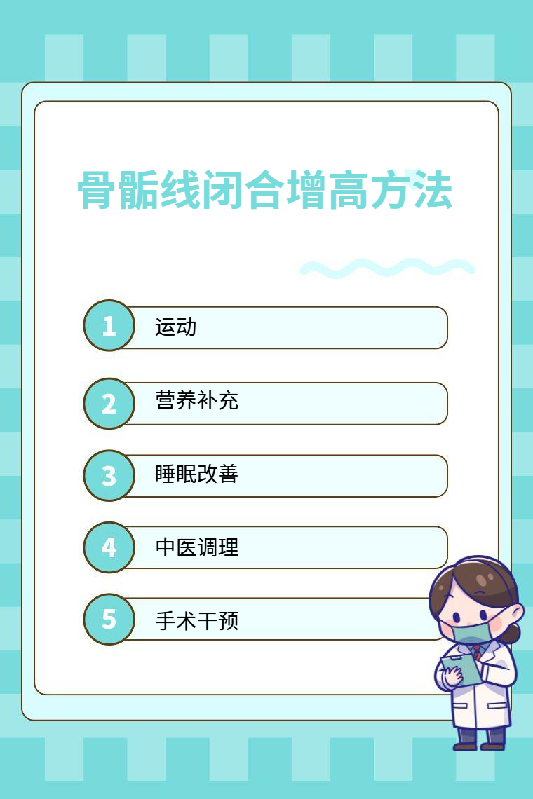 运动、营养补充、睡眠改善、中医调理、手术干预等是骨骺线闭合后可能的增高方法。