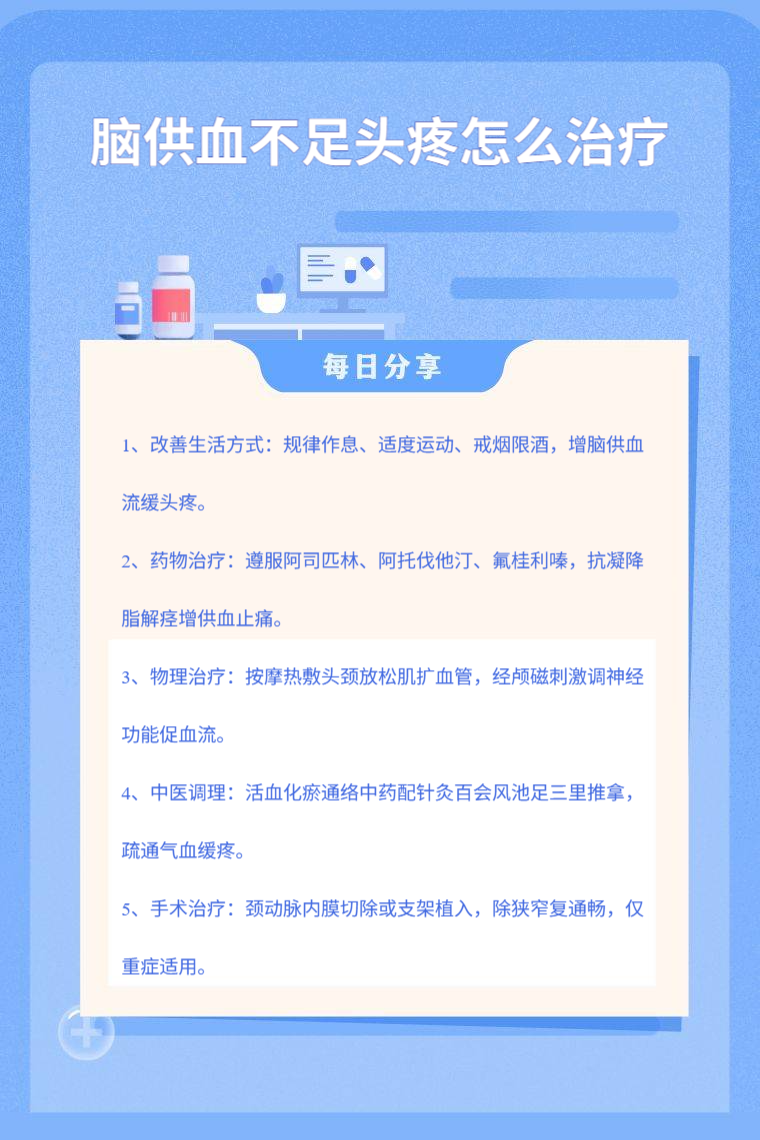 脑供血不足头疼可通过改善生活方式、药物治疗、物理治疗、中医调理、手术治疗等方法缓解。