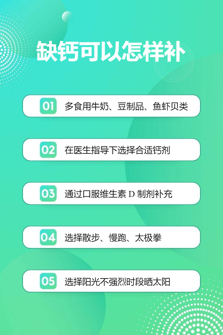 4. 适当运动:运动能促进骨骼健康,增加骨密度。可选择适合的运动方式,如散步、慢跑、太极拳等,有助于提高身体对钙的利用和吸收。
