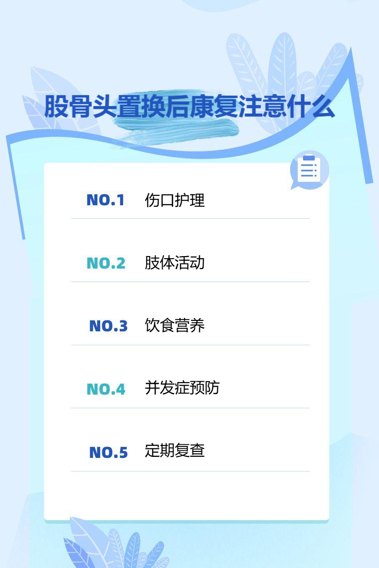 股骨头置换后康复需注意伤口护理、肢体活动、饮食营养、并发症预防、定期复查等。