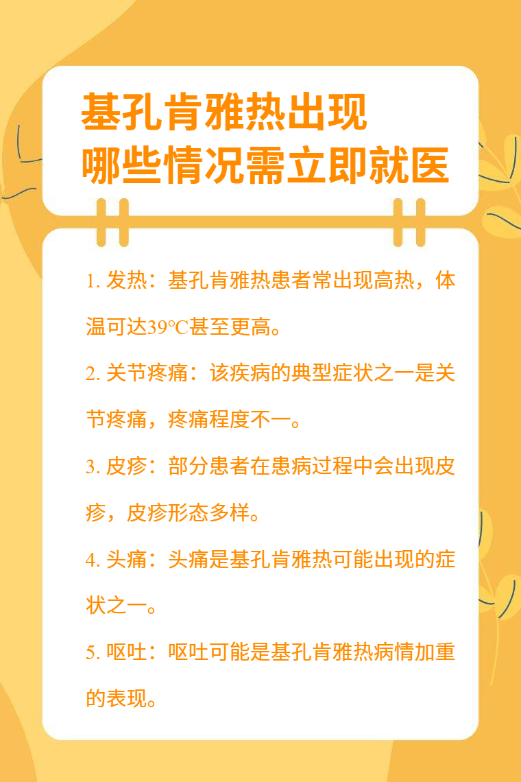 发热、关节疼痛、皮疹、头痛、呕吐等情况出现时需立即就医。