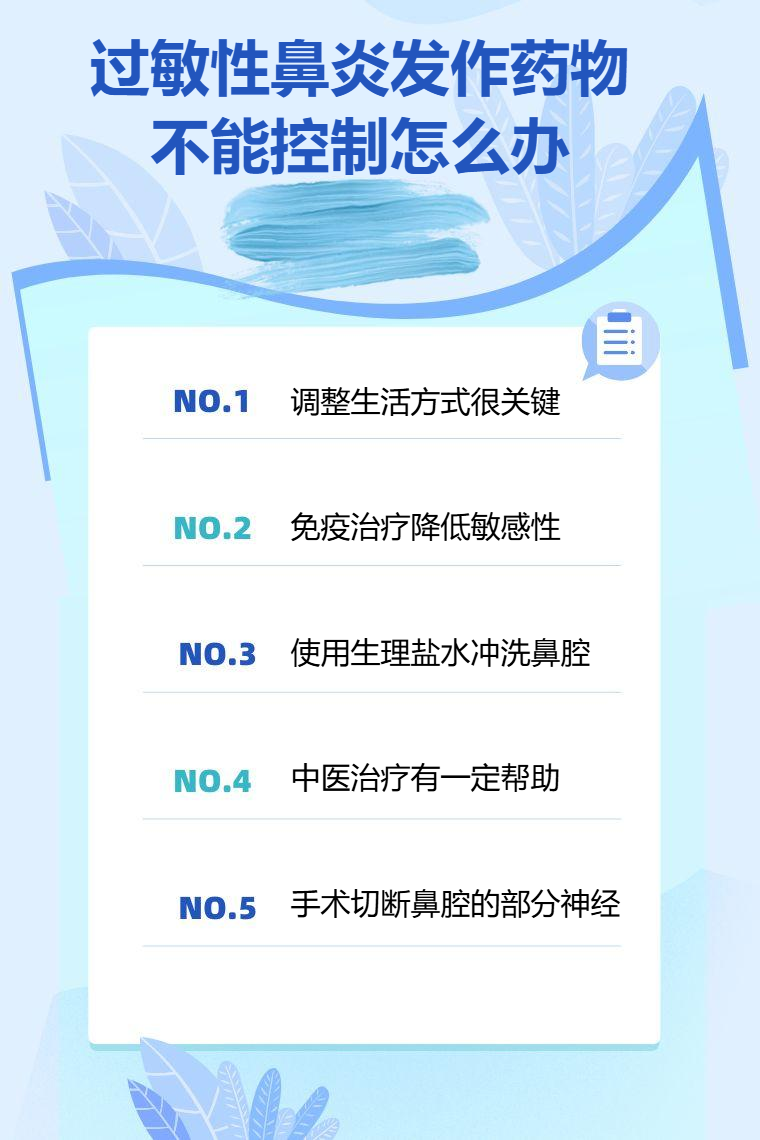 5. 手术治疗:当上述方法都无法有效控制过敏性鼻炎症状时,可考虑手术治疗。如选择性神经切断术,通过切断鼻腔的部分神经,降低鼻黏膜的敏感性,减少神经递质释放,从而减轻过敏症状。但手术有一定风险,需严格评估患者身体状况和病情后,由专业医生操作进行。