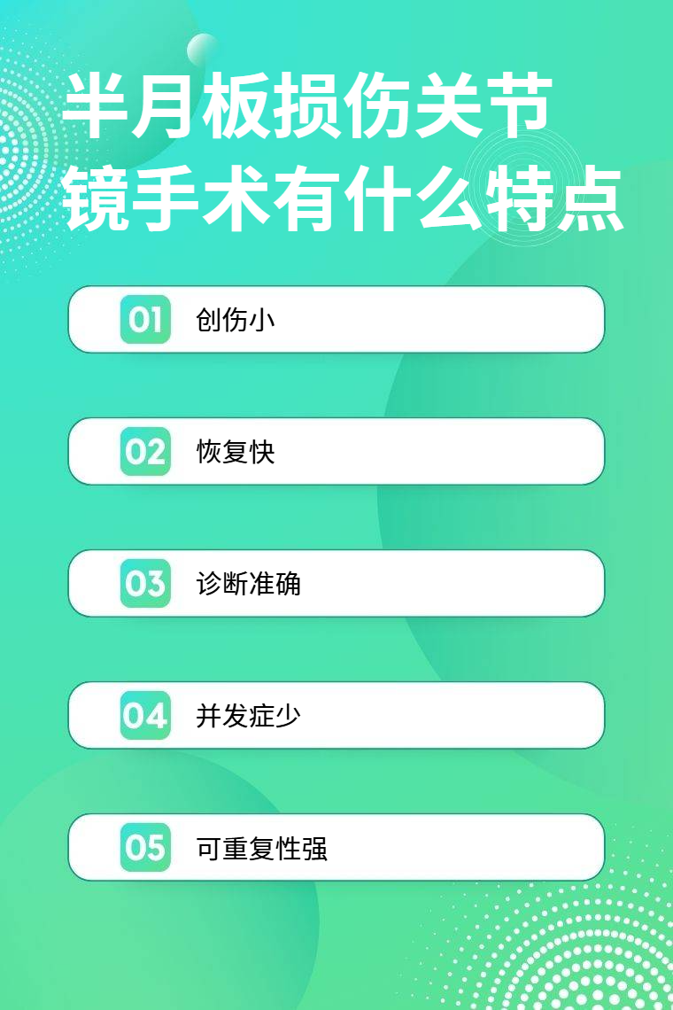 半月板损伤关节镜手术具有创伤小、恢复快、诊断准确、并发症少、可重复性强等特点。