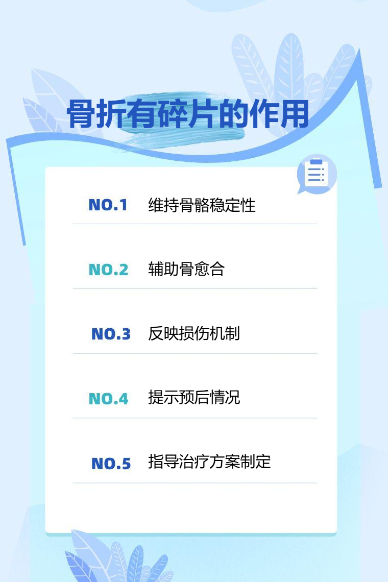 骨折碎片具有维持骨骼稳定性、辅助骨愈合、反映损伤机制、提示预后情况、指导治疗方案制定等作用。