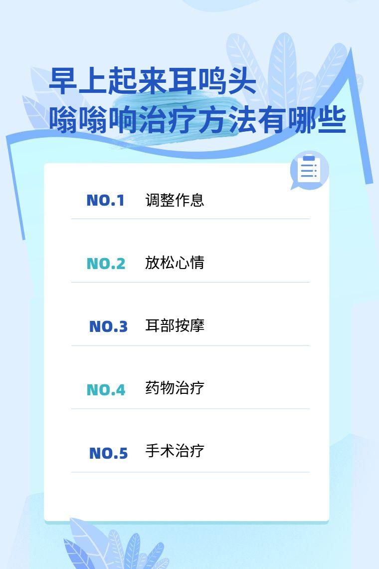 早上起来耳鸣头嗡嗡响可通过调整作息、放松心情、耳部按摩、药物治疗、手术治疗等方法缓解。