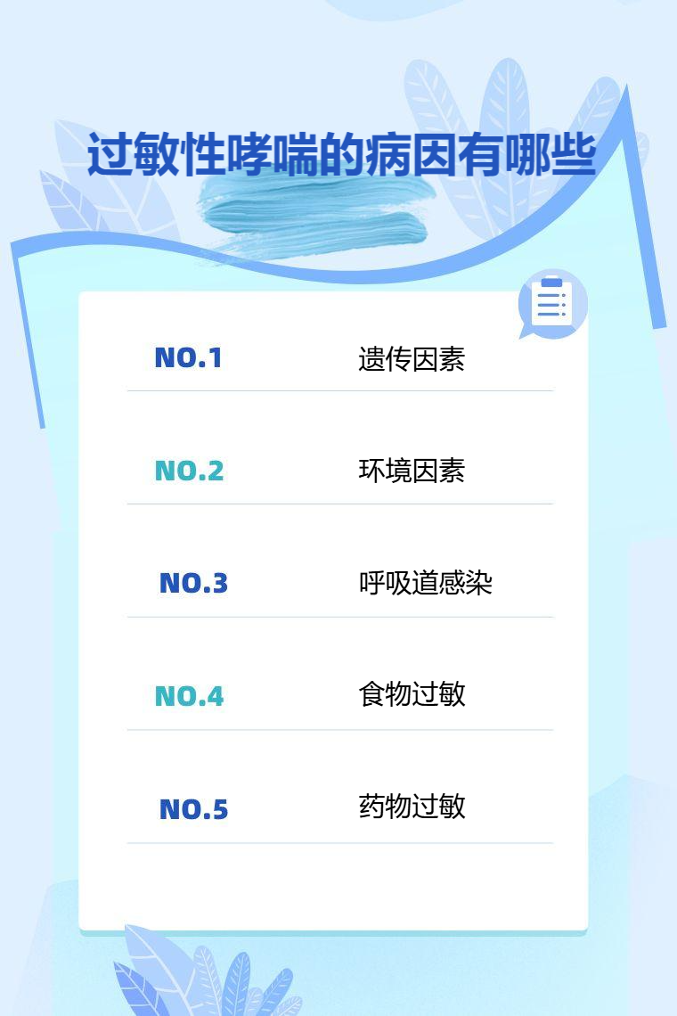 过敏性哮喘的病因有遗传因素、环境因素、呼吸道感染、食物过敏、药物过敏等。