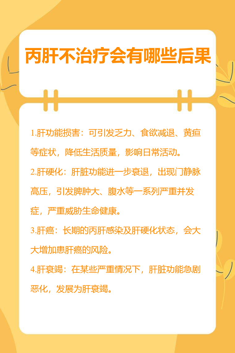 丙肝若不治疗可能出现肝功能损害、肝硬化、肝癌、肝衰竭等后果。