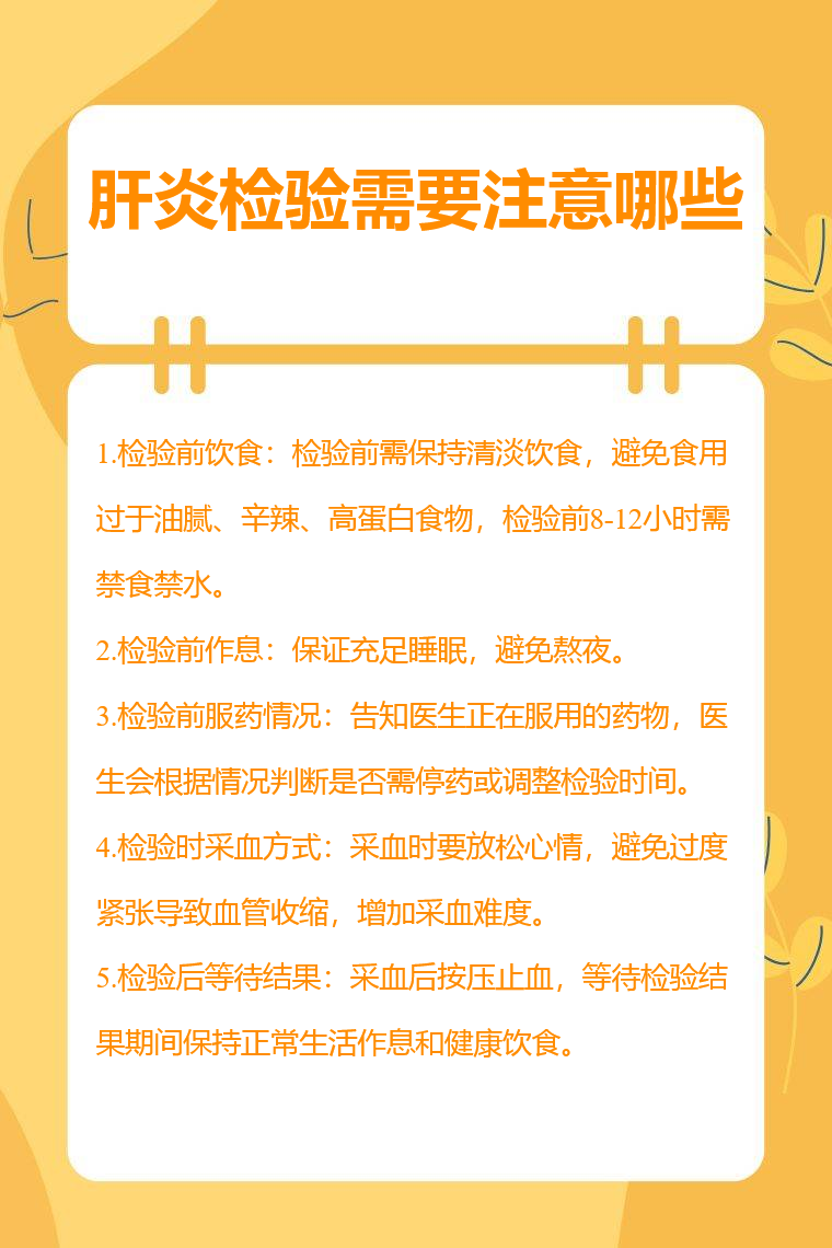 肝炎检验需要注意检验前饮食、作息、服药情况、检验时采血方式、检验后等待结果等。