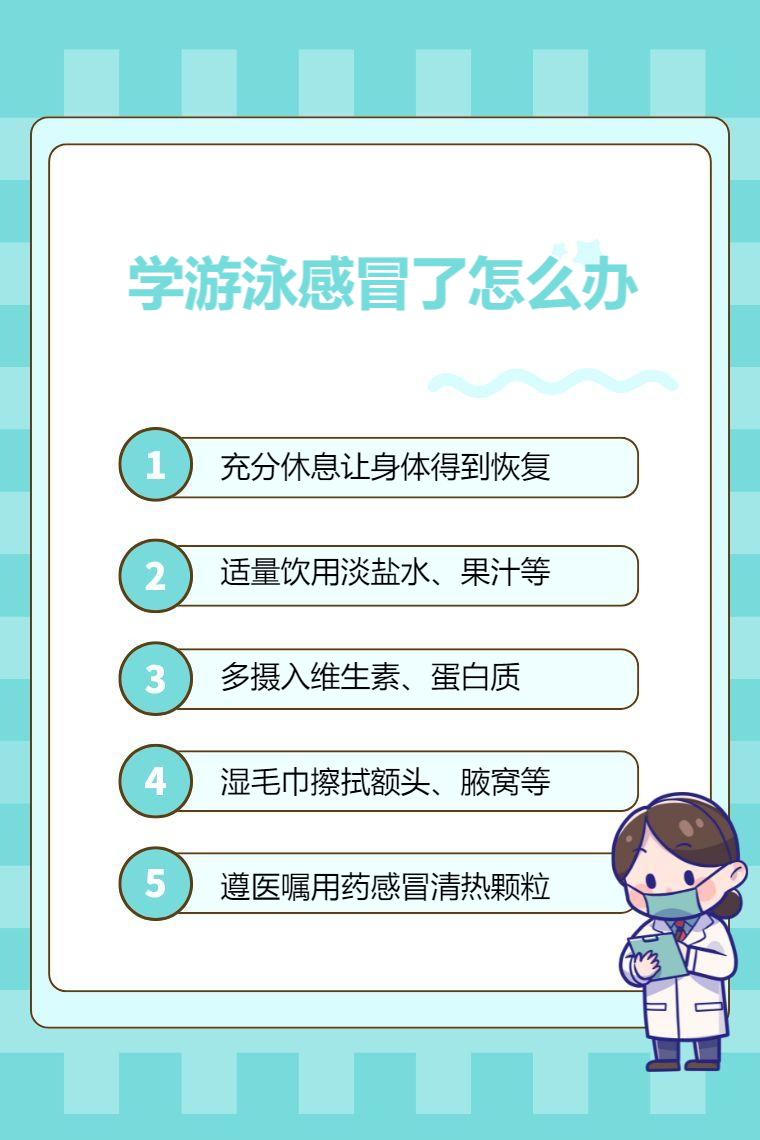 学游泳感冒了可通过休息、补充水分、饮食调理、物理降温、药物治疗等方法来应对。