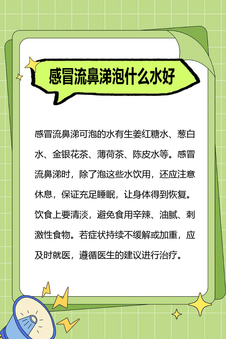 感冒流鼻涕可泡的水有生姜红糖水、葱白水、金银花茶、薄荷茶、陈皮水等。