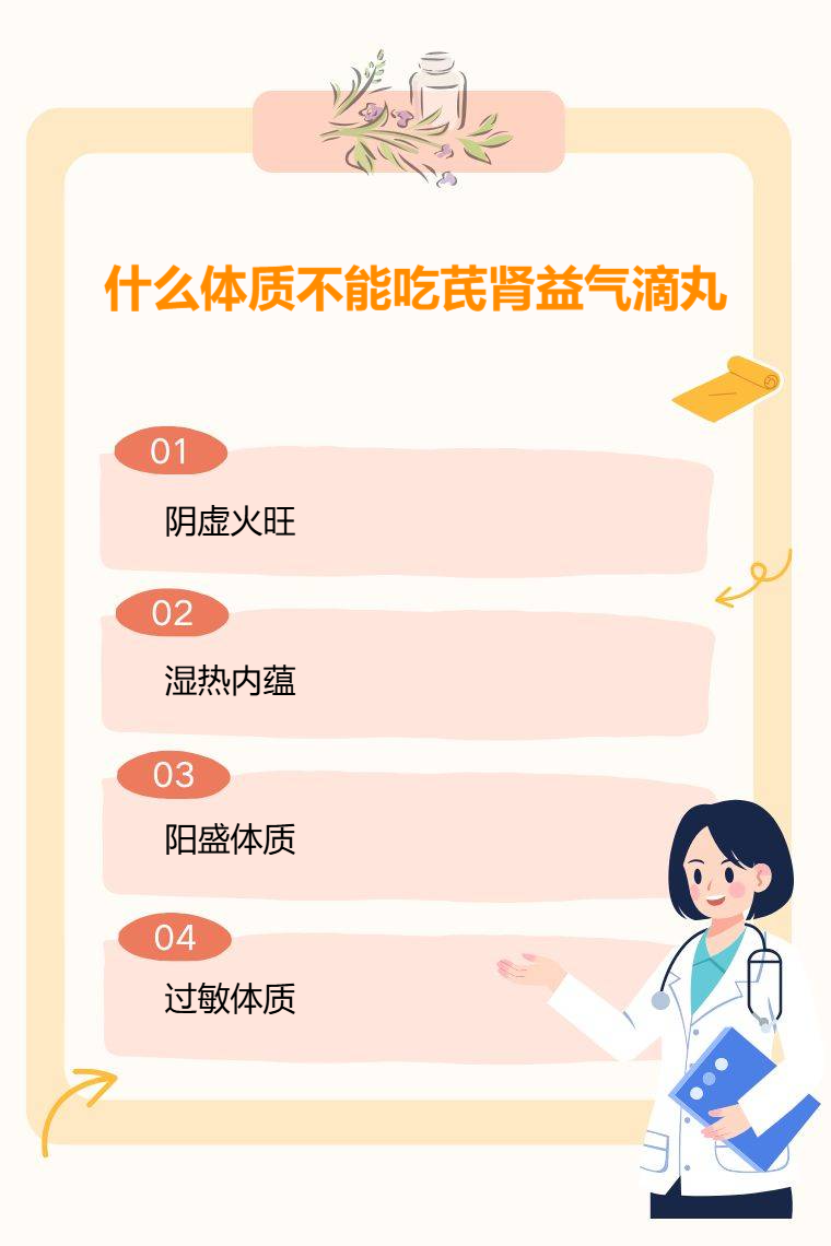 1. 阴虚火旺:阴虚火旺体质者体内阴液亏虚,虚火内生。芪肾益气滴丸主要功效为益气通脉、活血止痛,其药物成分多具温热特性,阴虚火旺者服用后,会进一步灼伤体内阴液,导致虚火更旺,加重潮热盗汗、口干咽燥、五心烦热等症状。