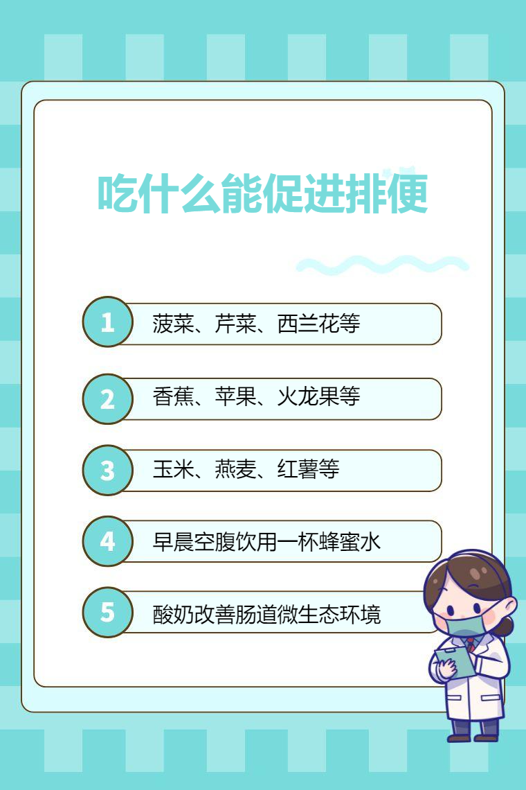 吃富含膳食纤维的蔬菜、水果、粗粮,喝蜂蜜水、酸奶等能促进排便。