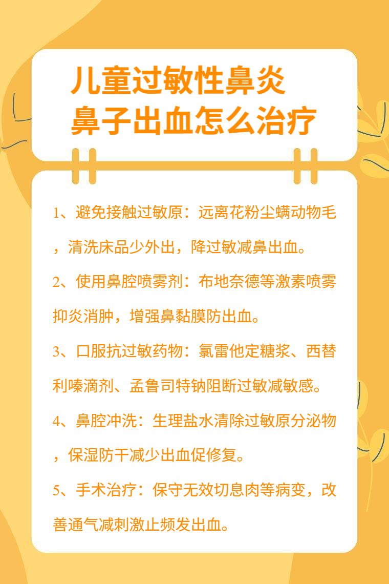 儿童过敏性鼻炎鼻子出血可通过避免接触过敏原、使用鼻腔喷雾剂、口服抗过敏药物、鼻腔冲洗、手术治疗等方法来应对。