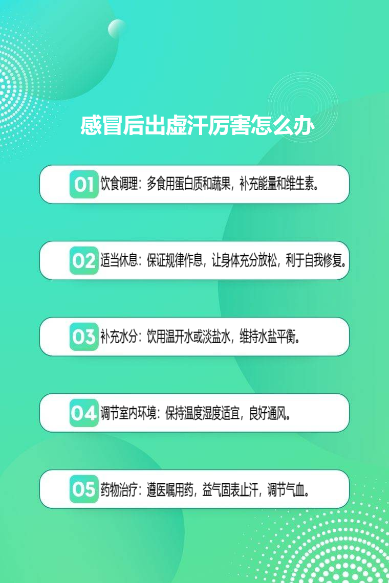 感冒后出虚汗厉害可通过饮食调理、适当休息、补充水分、调节室内环境、药物治疗等方法来缓解。