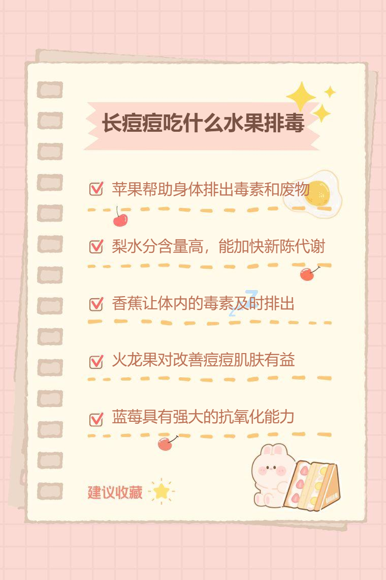 长痘痘可通过吃苹果、梨、香蕉、火龙果、蓝莓等水果辅助排毒。