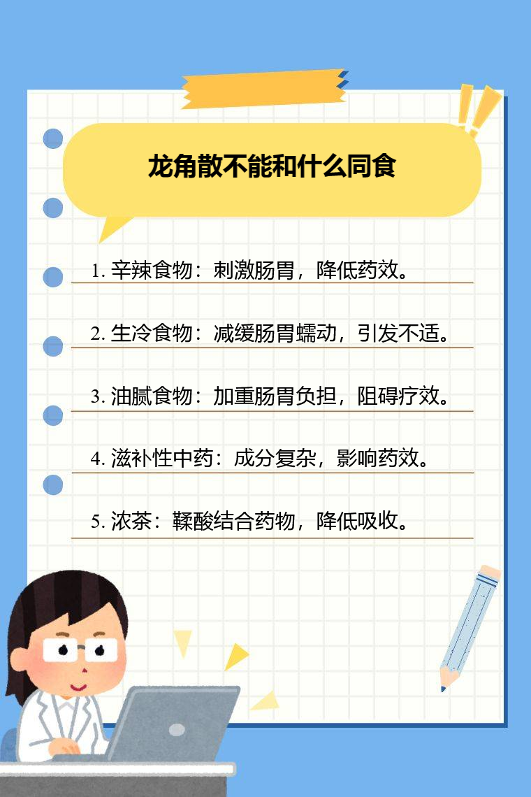 在服用龙角散期间,饮食方面需格外留意,尽量避免上述食物。保持清淡、易消化的饮食,多吃蔬菜、水果,保证充足水分摄入。若正在服用其他药物或有特殊疾病史,务必在用药前咨询专业医生建议,确保用药安全有效,促进身体早日康复 。