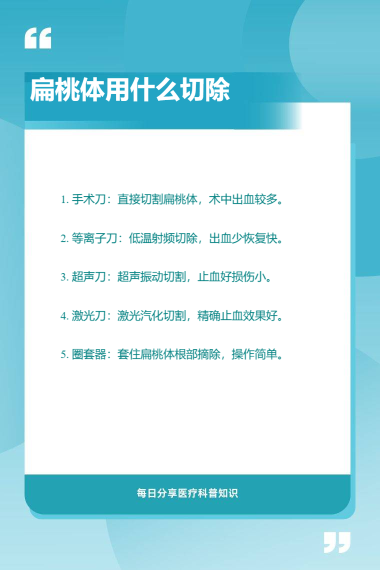 扁桃体切除常用的器械有手术刀、等离子刀、超声刀、激光刀、圈套器等。