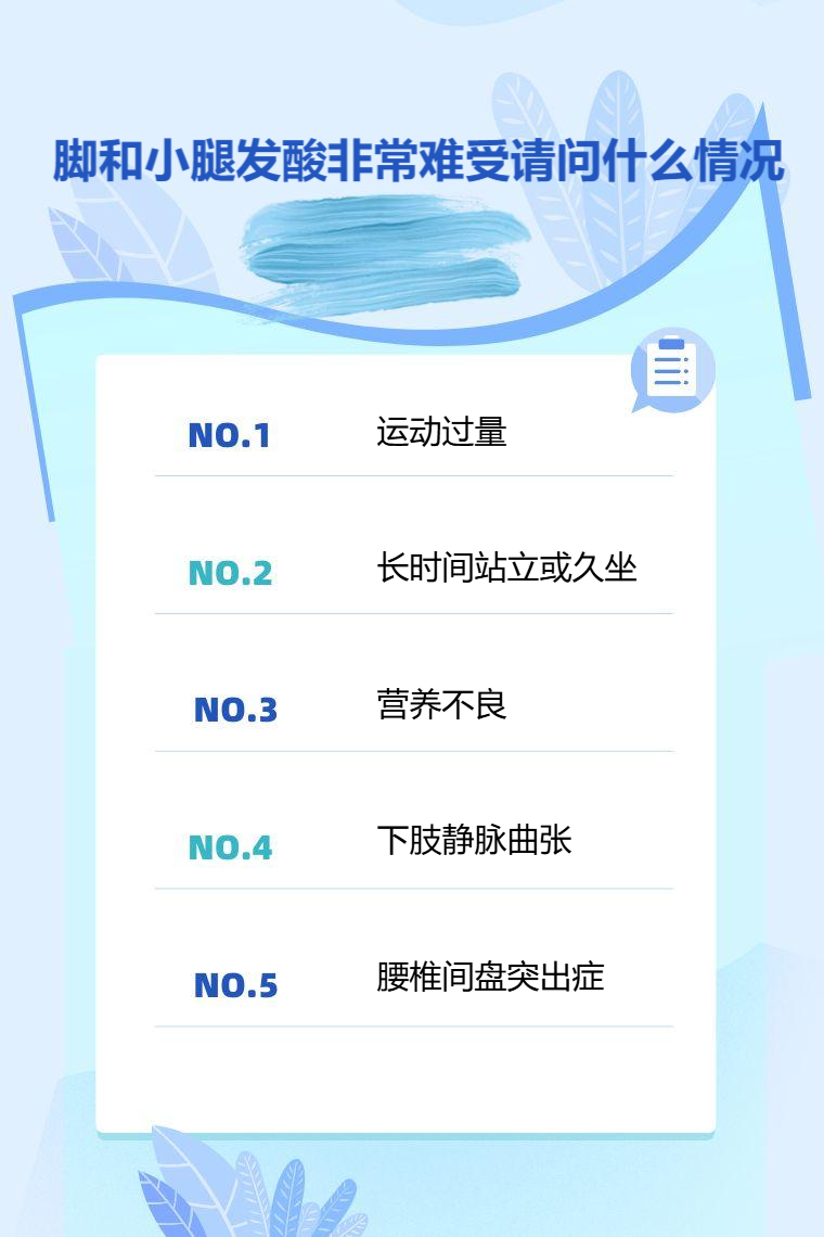 脚和小腿发酸难受可能由运动过量、长时间站立或久坐、营养不良、下肢静脉曲张、腰椎间盘突出症等情况引起。