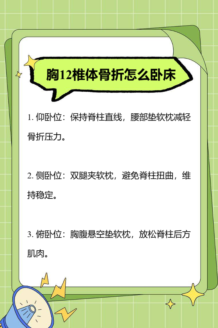 胸12椎体骨折卧床方式有仰卧位、侧卧位、俯卧位等。