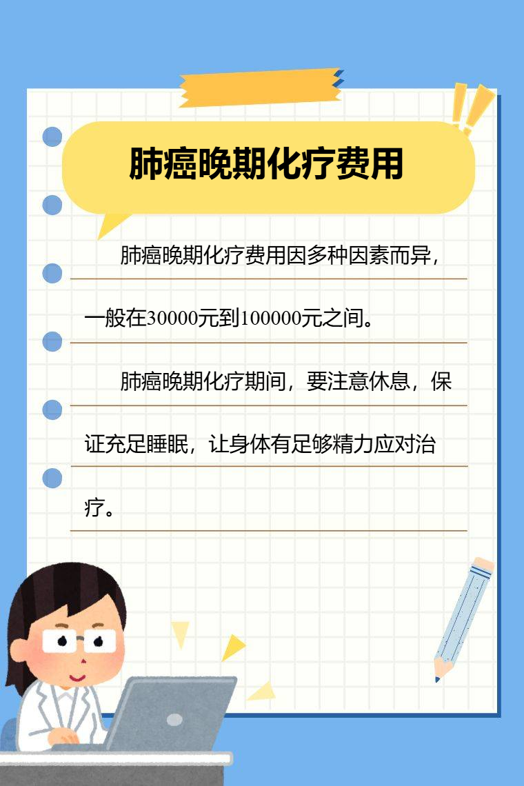 肺癌晚期化疗费用因多种因素而异,一般在30000元到100000元之间。影响费用的因素有化疗方案、药物种类、治疗周期、患者身体状况等。