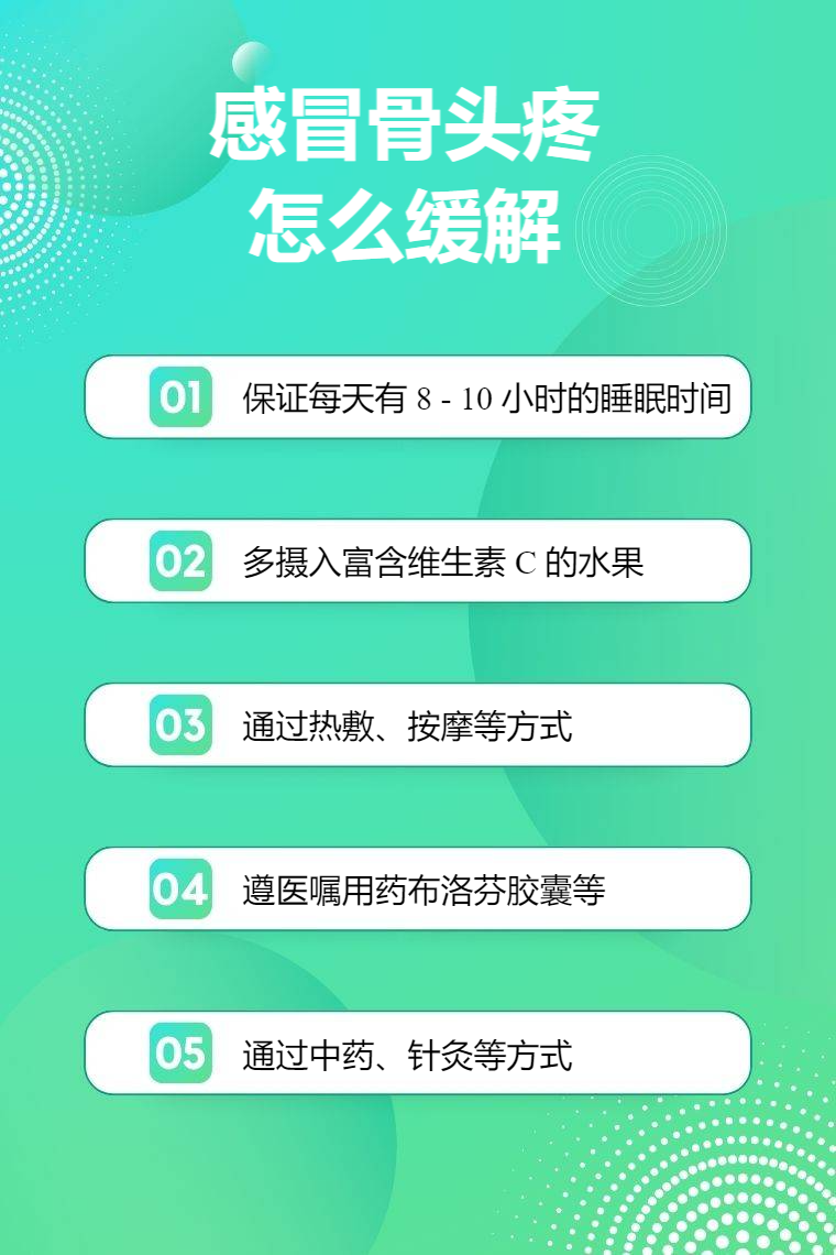 5. 中医调理:中医调理可从整体上调节身体机能,缓解感冒骨头疼症状。中医认为感冒骨头疼与外感邪气、气血不畅有关,通过中药、针灸等方式可疏风解表、调和气血。可在中医师指导下服用感冒清热颗粒等中药;针灸可刺激特定穴位,如合谷穴、风池穴等,激发经气活动,调节身体功能。