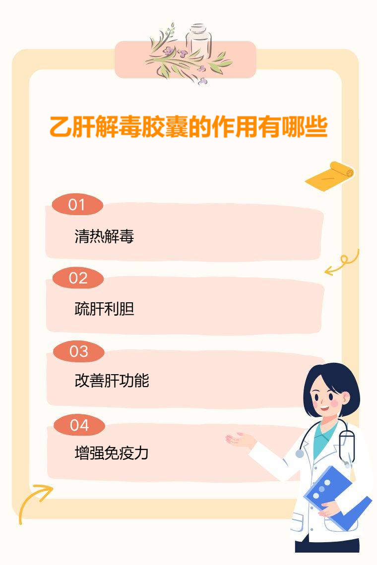 乙肝解毒胶囊具有清热解毒、疏肝利胆、改善肝功能、增强免疫力等作用。