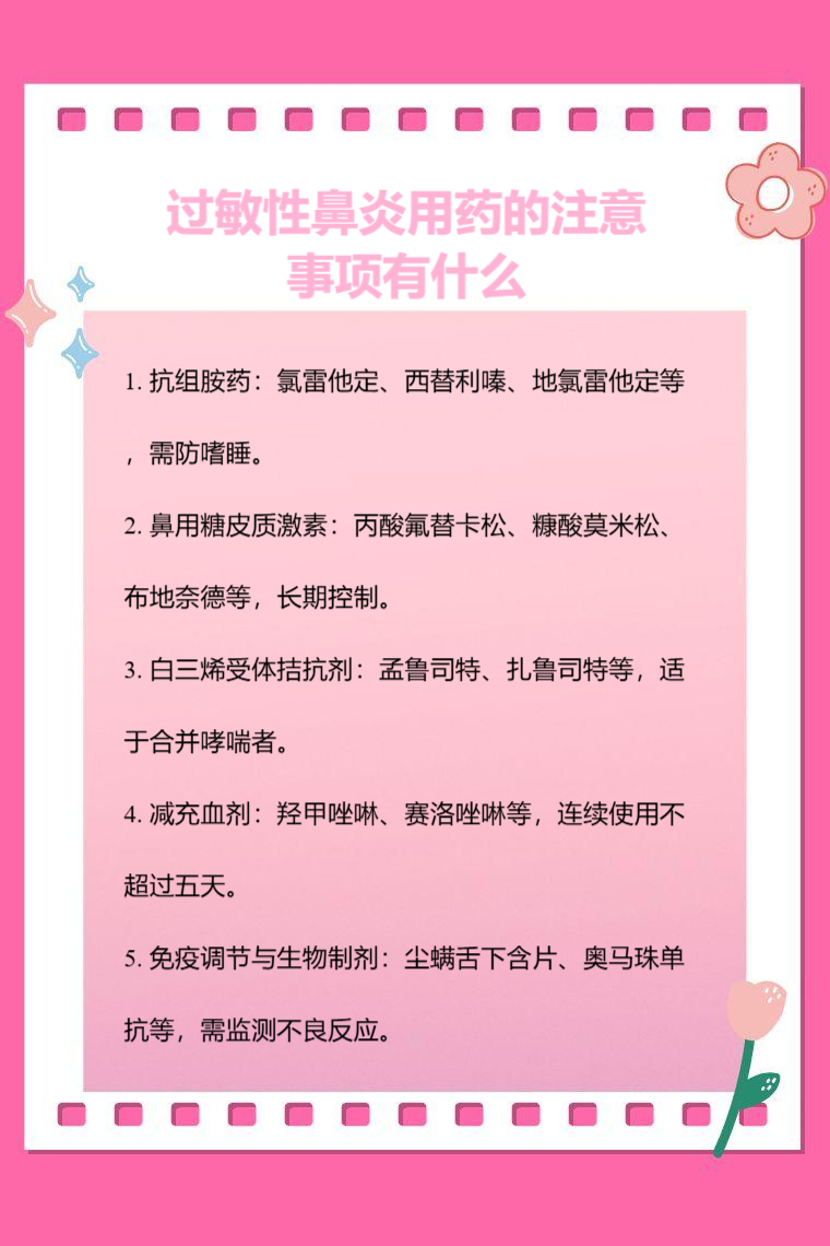 抗组胺药、鼻用糖皮质激素、白三烯受体拮抗剂、减充血剂、免疫调节剂等是治疗过敏性鼻炎的常用手段,用药类型不同,注意事项也不同。