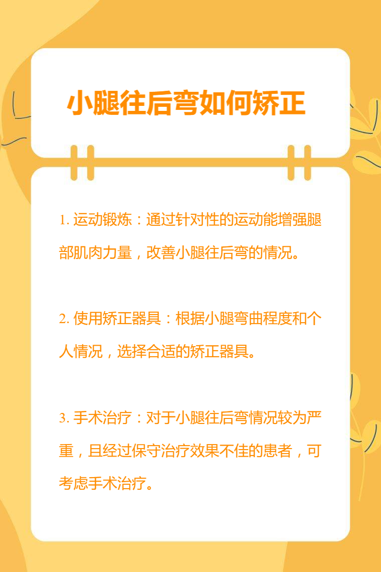 小腿往后弯可通过运动锻炼、使用矫正器具、手术治疗等方法矫正。