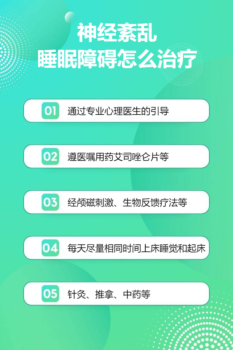 神经紊乱睡眠障碍的治疗方法有心理治疗、药物治疗、物理治疗、生活方式调整、中医治疗等。
