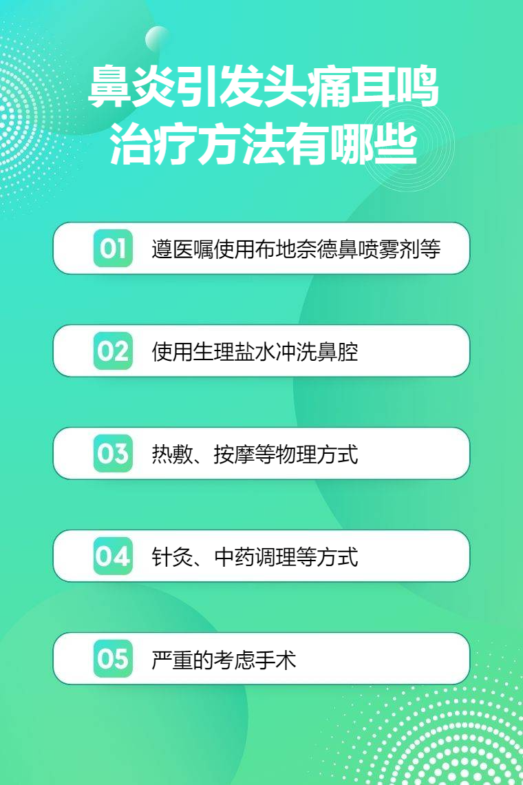 鼻炎引发头痛耳鸣的治疗方法有药物治疗、鼻腔冲洗、物理治疗、中医治疗、手术治疗等。