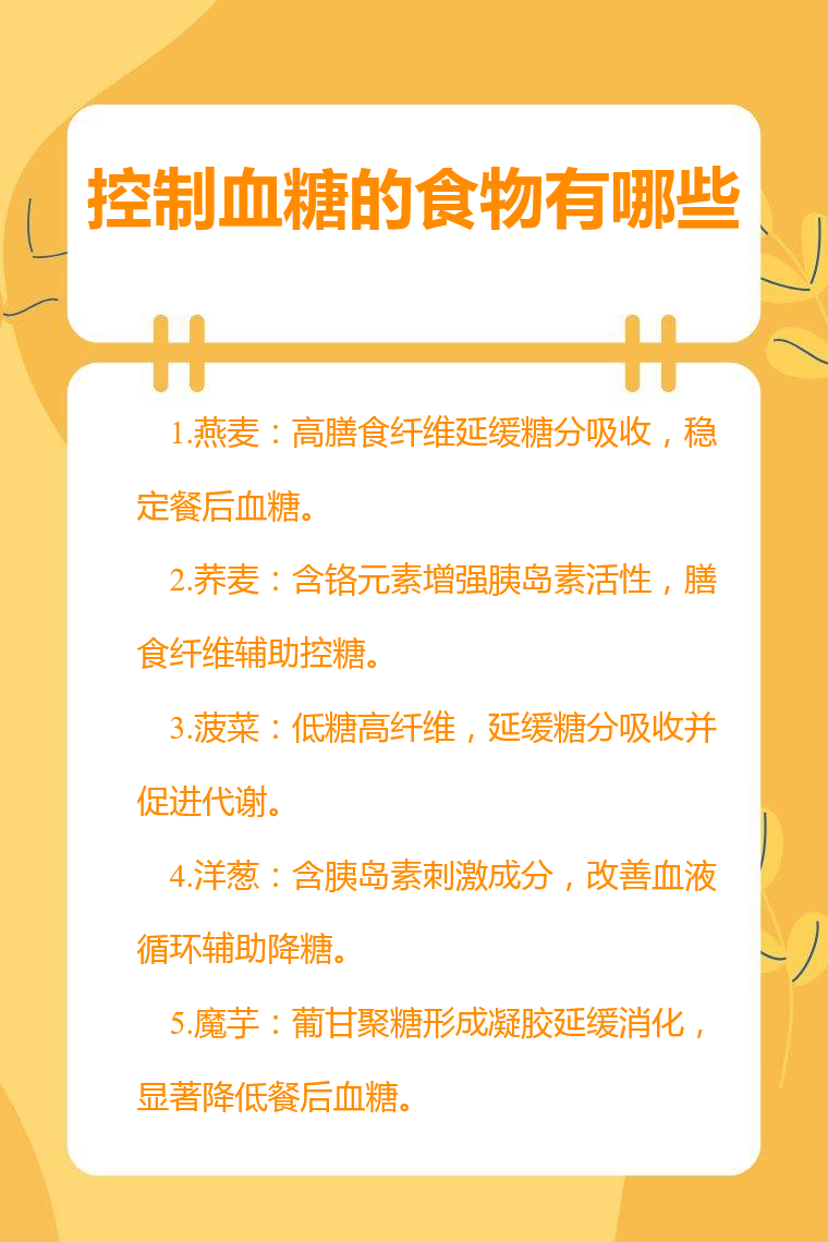 控制血糖的食物有燕麦、荞麦、菠菜、洋葱、魔芋等。