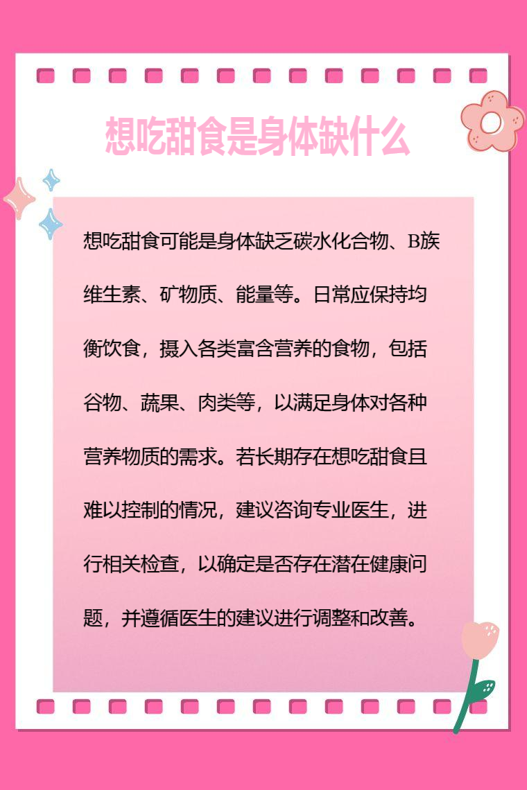 想吃甜食可能是身体缺乏碳水化合物、B族维生素、矿物质、能量等。